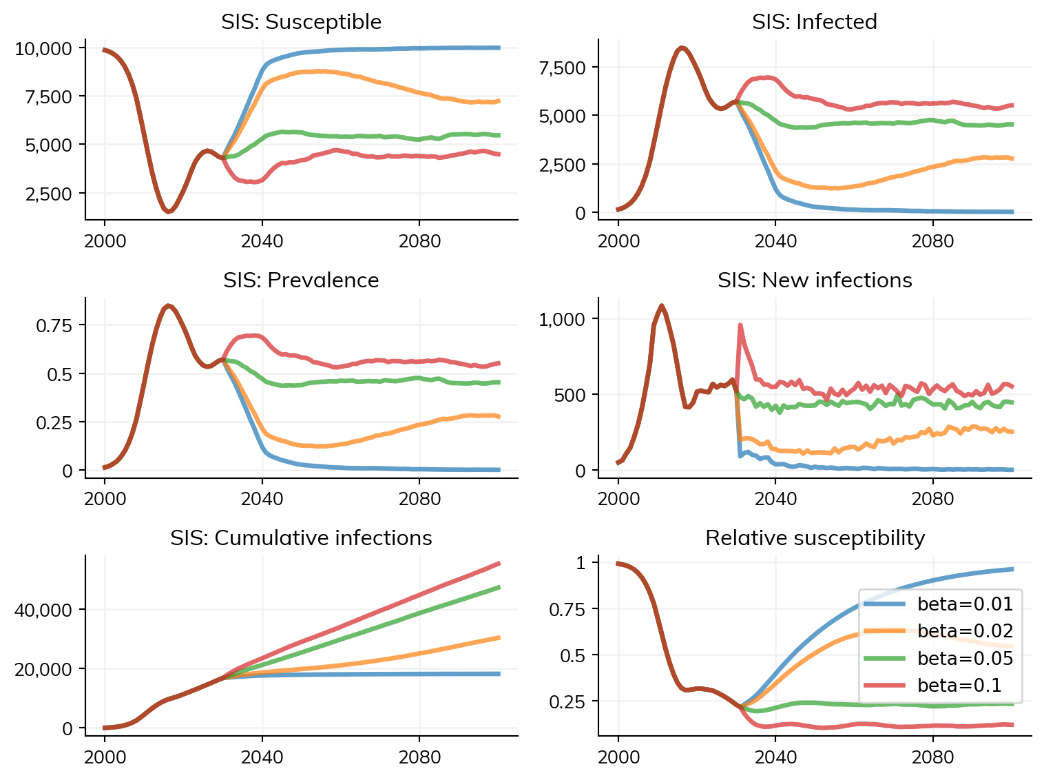 base_sim = ss.Sim(diseases='sis', networks='random', start=2000, stop=2100, verbose=False)