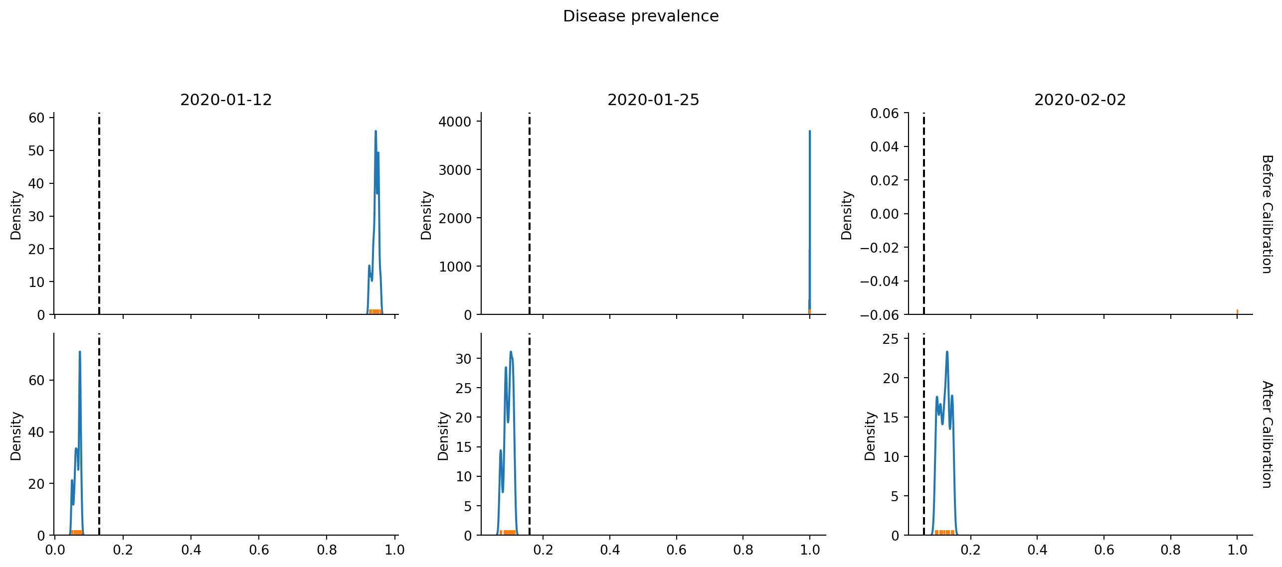 calib.plot(bootstrap=True); # Pass bootstrap=True to produce this plot/home/runner/work/starsim/starsim/starsim/calibration.py:1137: UserWarning: Dataset has 0 variance; skipping density estimate. Pass `warn_singular=False` to disable this warning.