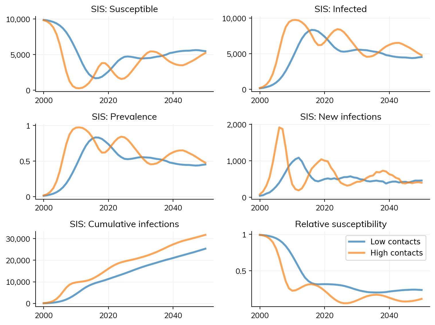 The easiest way to do this is with ss.parallel(), which, as the name suggests, runs the sim in parallel on your computer using all available cores. Let’s say we want to see what difference swapping the network makes: